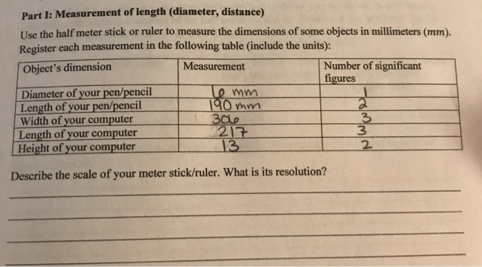 Solved Part I Measurement Of Length Diameter Distance Chegg Com